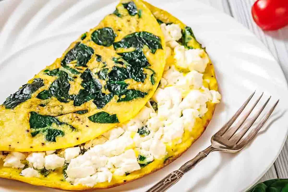 Goat Cheese Omelet with Sautéed Spinach